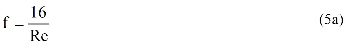 For laminar flow (ie Re < 2000),While for a smooth pipe with turbulent (i.e. Re > 4000) flow,